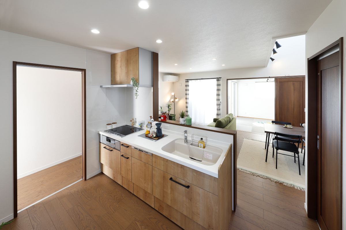 通風と採光の窓が2カ所あり、左奥でキッチンともつながっているので、キッチン側は、水や食糧をストックするパントリーとしても使えそうです。さらにLDKを抜けて玄関へと、ぐるっと一周できます。