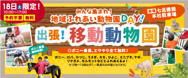 土地探しや間取りプラン、資金計画、デザインなど家の設計について気軽に相談できます。10月18日(日)は、移動動物園も。ポニー乗馬やエサやりも無料で体験できますよ。